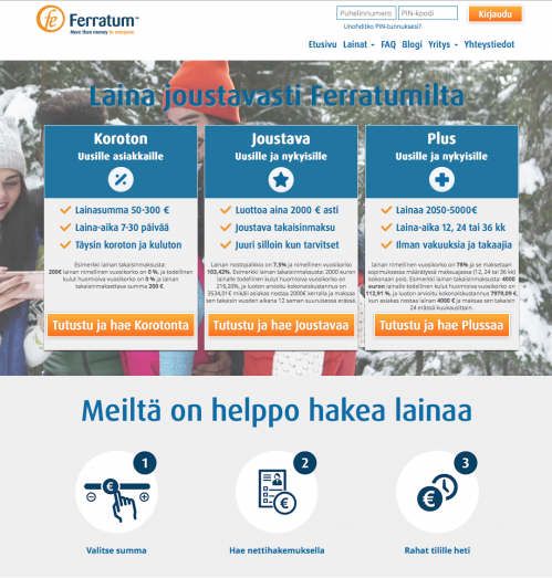Ferratum.fi – lainaa yli 18-vuotiaille 50 – 5000€